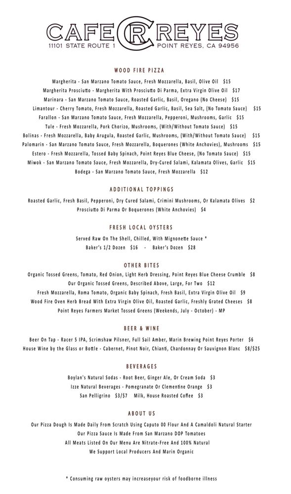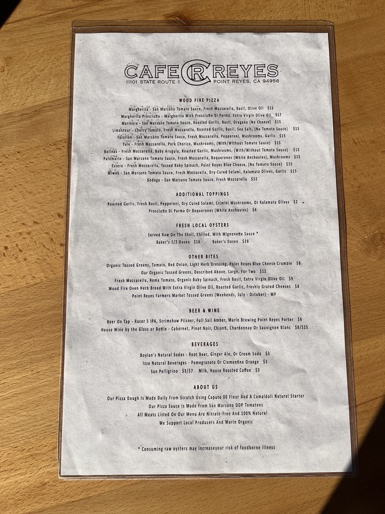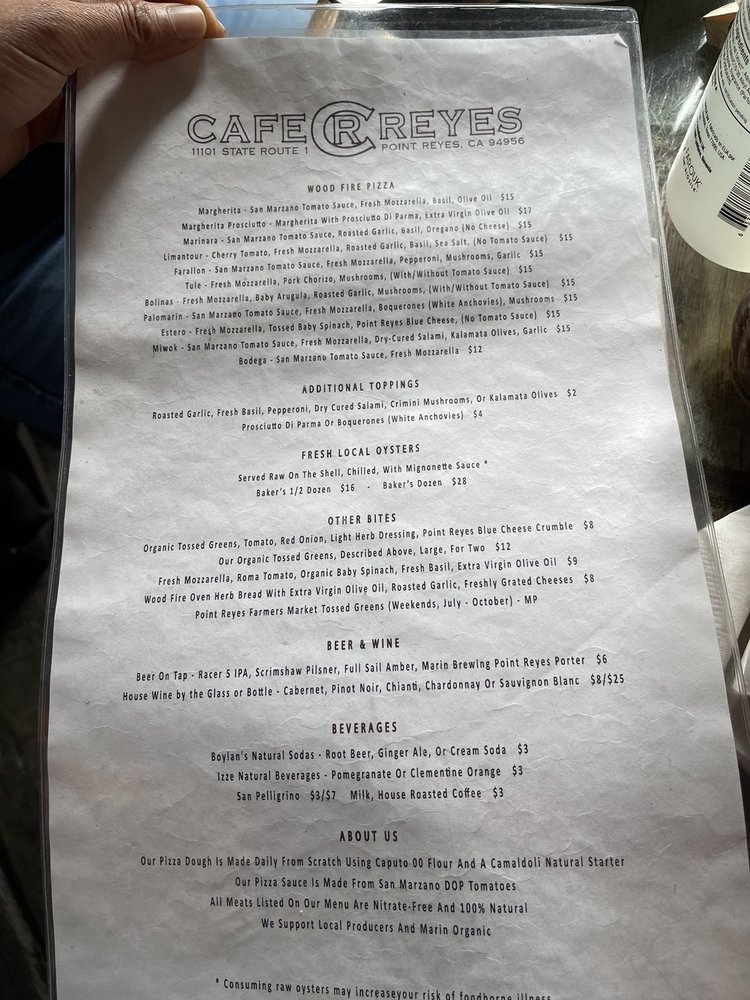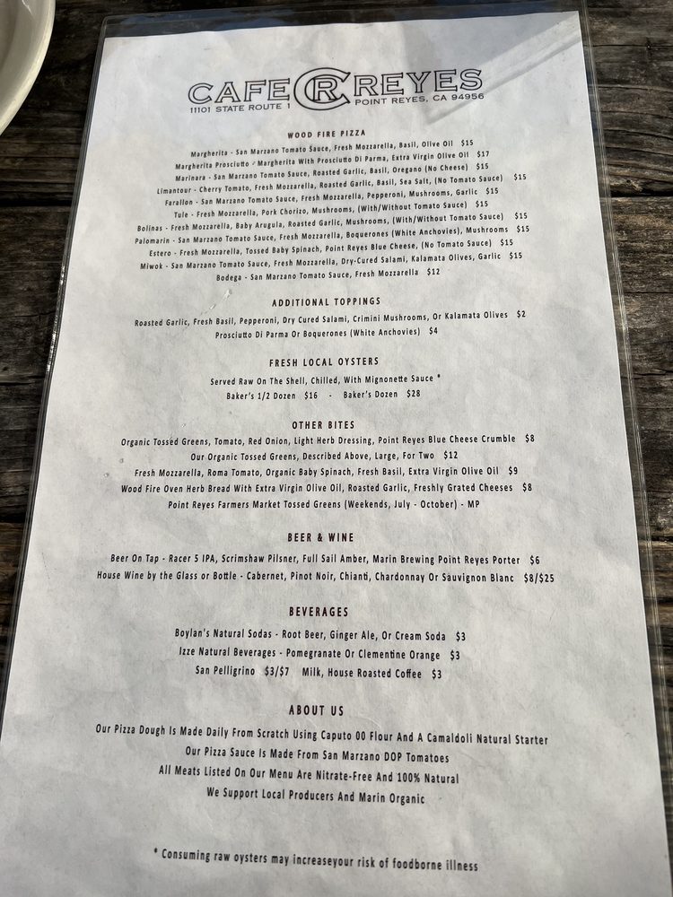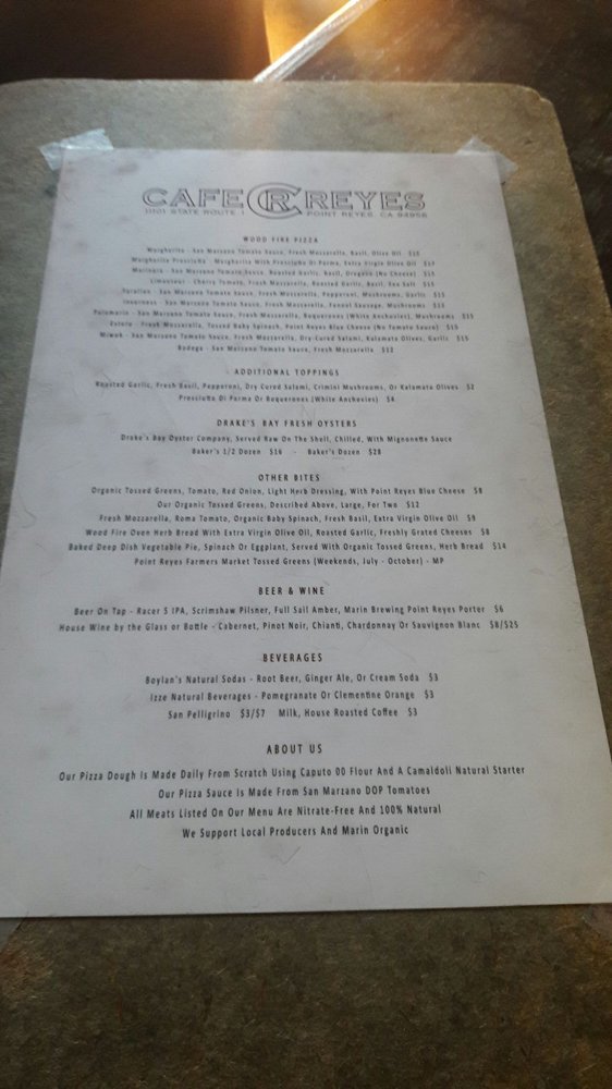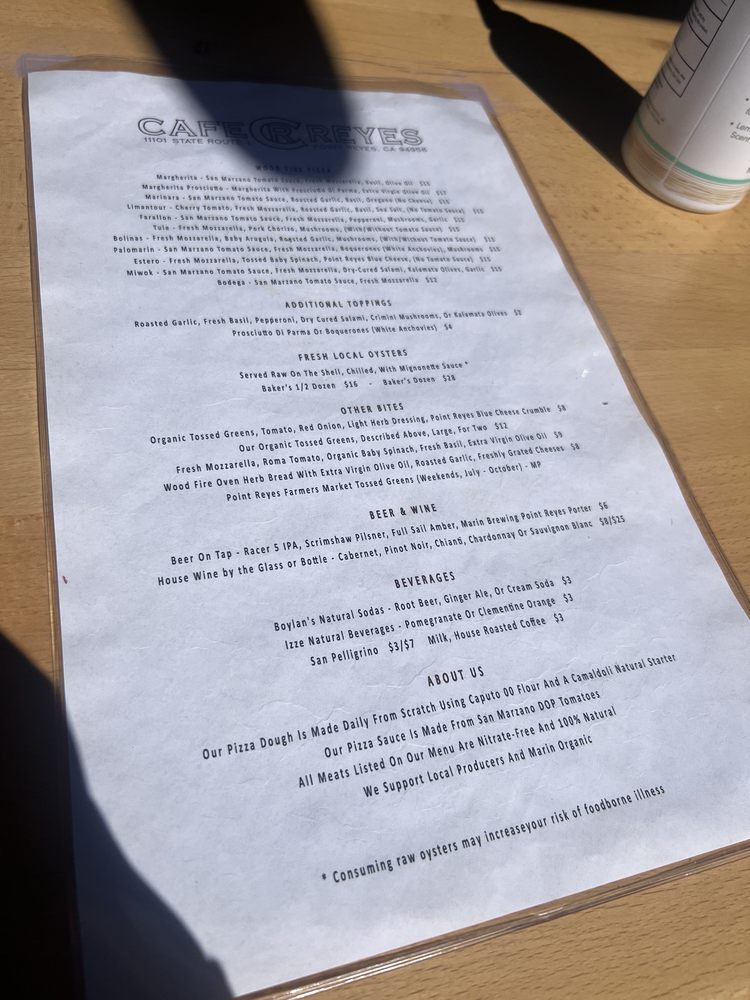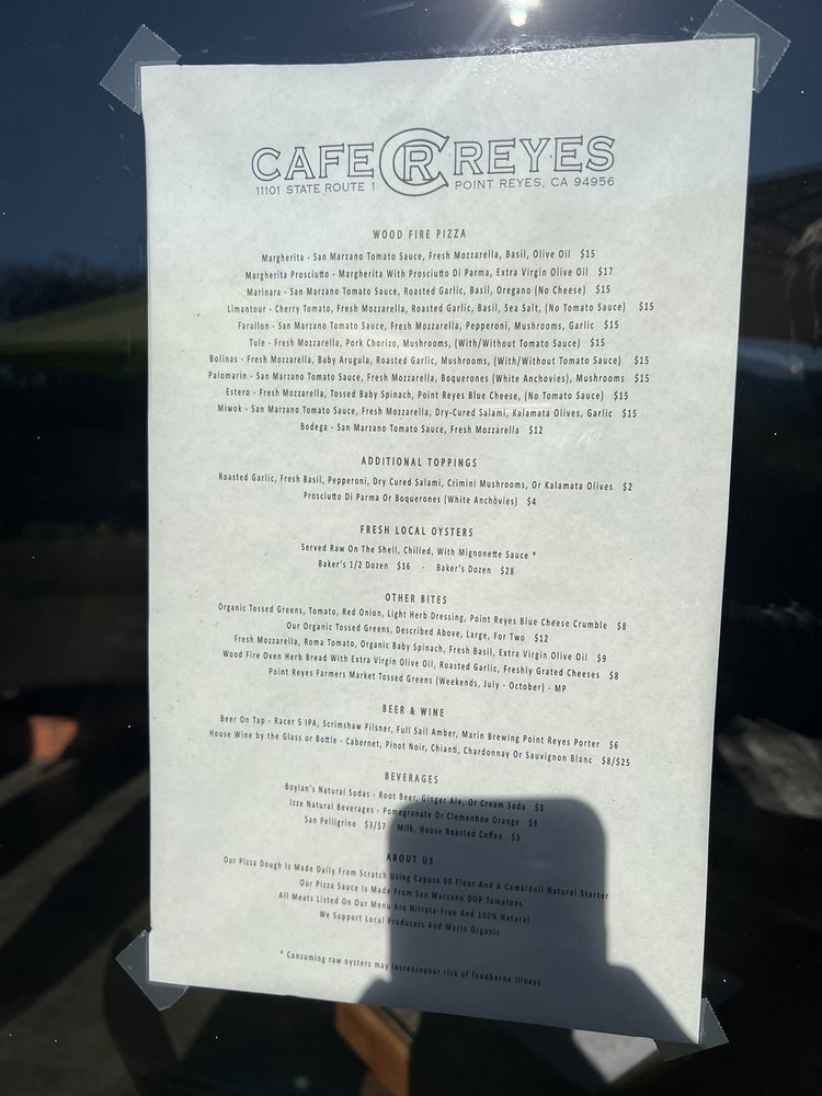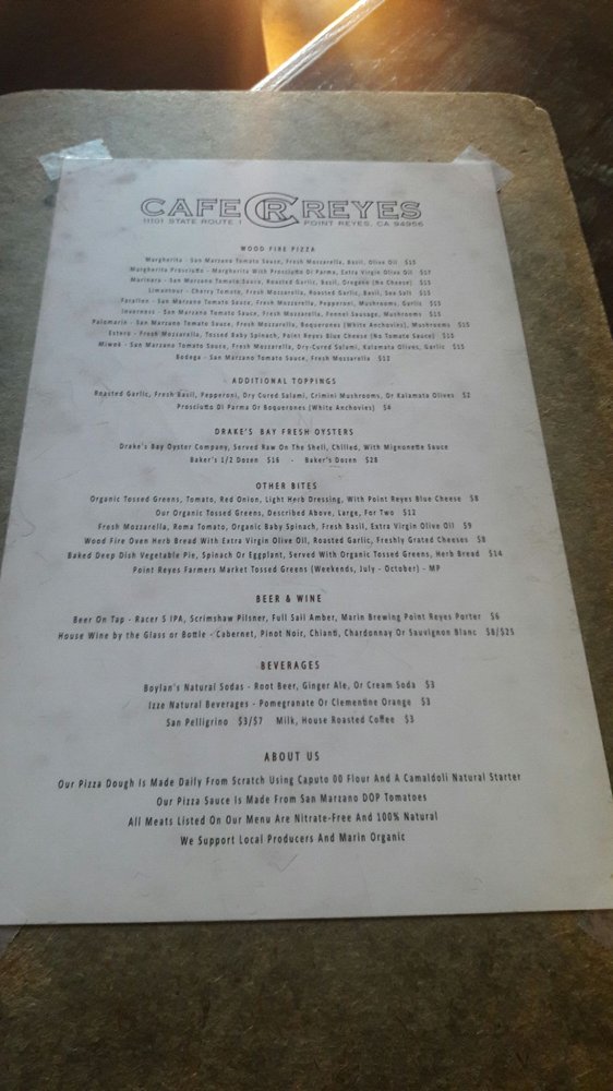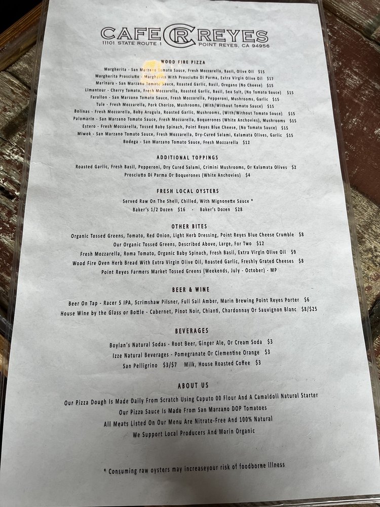 Introducing Cafe Reyes, a cozy pizza spot in Point Reyes Station, CA. Known for its wood-fired pizzas, Cafe Reyes offers a variety of options for both vegetarians and vegans. Customers rave about the pepperoni mushroom pizza and the wood fire herb bread. The outdoor seating area provides a beautiful setting to enjoy your meal, and the friendly staff adds to the overall experience. With options for takeout, delivery, and catering, Cafe Reyes is a versatile choice for all occasions. The menu, while pizza-focused, also includes salads and raw oysters for those looking for a lighter option. Overall, Cafe Reyes is a gem worth checking out for delicious and affordable dining in the Bay Area.